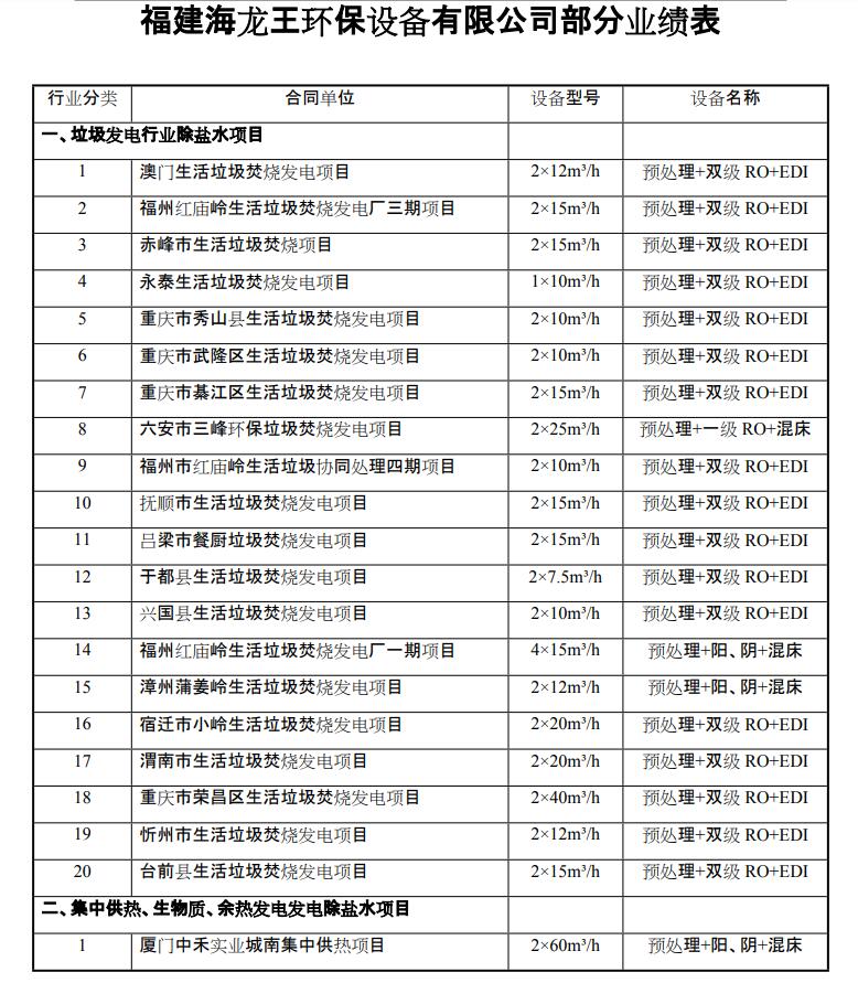 您現在的位置:福建海龍王環保設備有限公司 >> 關于我們 >> 公司業績